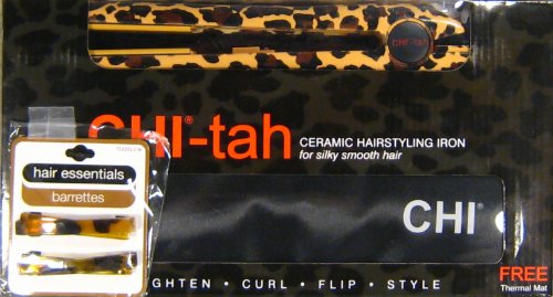 The Chi-tah Salon Professional 1" Ceramic Hairstyling Iron with Swivel Cord. Free Thermal Mat & Animal Print Barrettes. Straighten, It's features